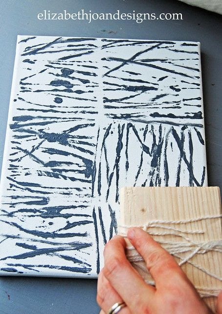 Clockwise from top left: shell printing (completely-coastal.com), wood cuts (bryannashgill.com), leaf stamps (carolreatondesigns.blogspot.com), and poppy seed stamps (feinslieb.net) String Stamps: Wrap string or even rubber bands around a block or spool for some neat patterns or abstract prints. Play with thickness, overlapping lines, squiggles, or texture to create something new.