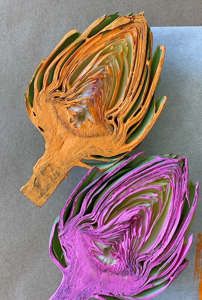 Clockwise from top left: Citrus stamps by jessicawellinginteriors.com, vege stamps by gelliartsblog.com, artichoke stamps by my100yearoldhome.com and mushroom stamps by mothernatured.com Flowers & More: Speaking of nature, there are so many amazing other natural materials that you can use for stamping patterns onto a surface - seed heads, leaves, cut logs, shells etc.
